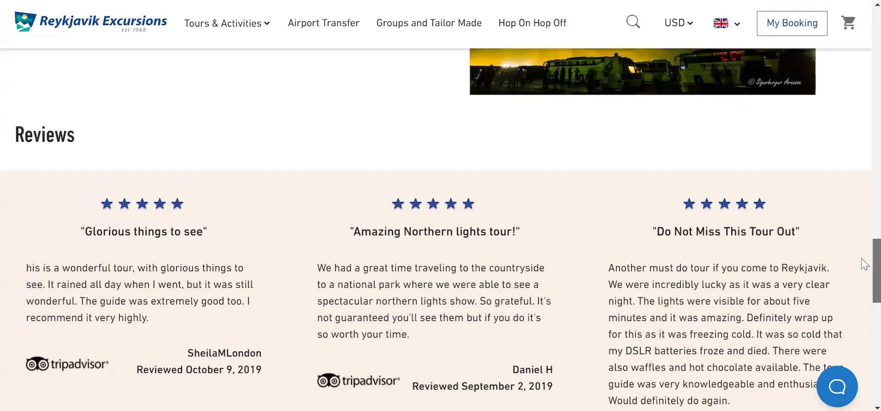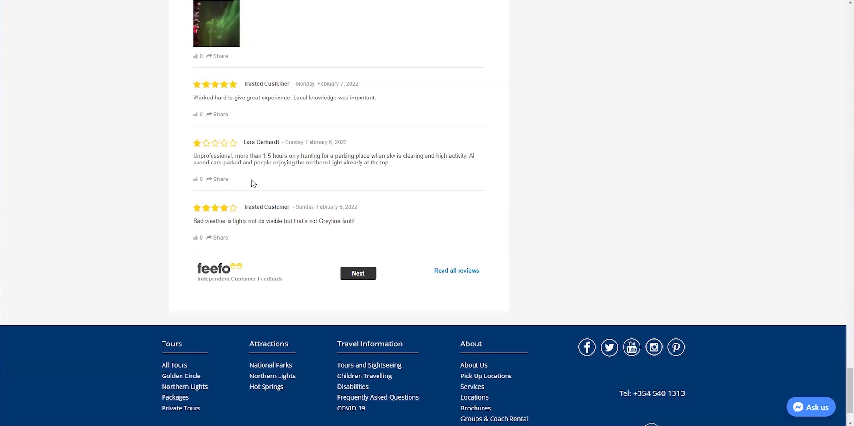 Meanwhile, after reading negative reviews for a Northern Lights tour, a few participants decided not to book it (importantly though the site didn’t respond to the negative reviews).