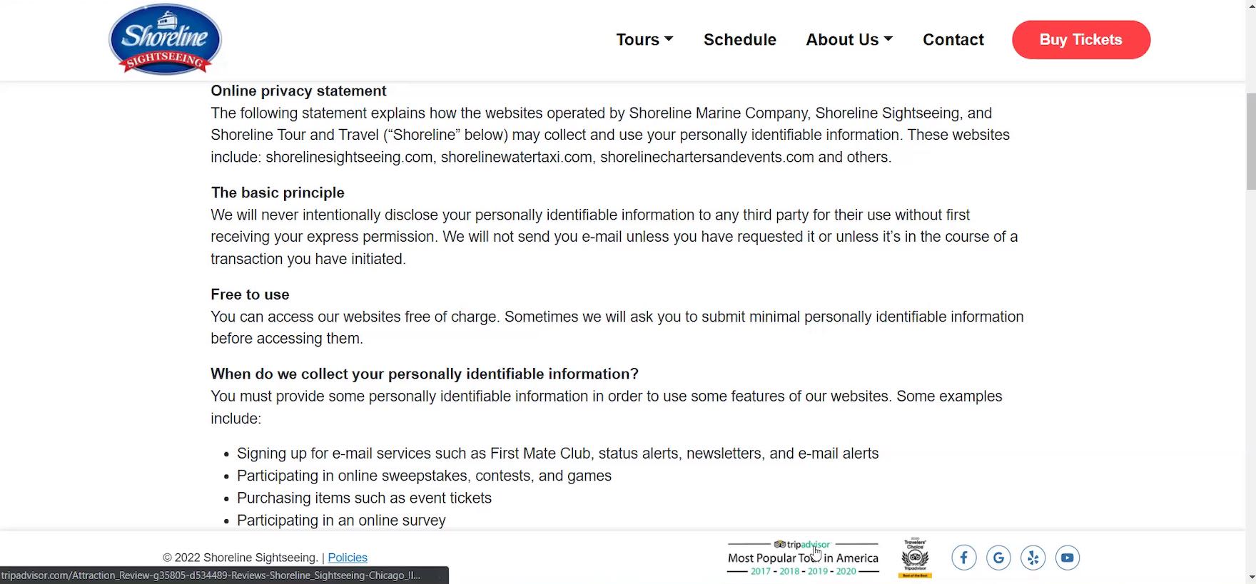 “They have their Tripadvisor ratings — 2017, 2018, 2019, and 2020. They have a long streak of satisfied customers”, remarked a participant at Shoreline Sightseeing, hovering his cursor over the Tripadvisor badge in the persistent footer (first image). The badge is a link, providing one-click access to the tour operator’s profile page at Tripadvisor (second image, taken after testing concluded by the researcher). Testing revealed that linking third-party logos and badges to the associated company profile page matches users’ expectations while saving them the time and effort of manually navigating to the site and searching for the desired information.