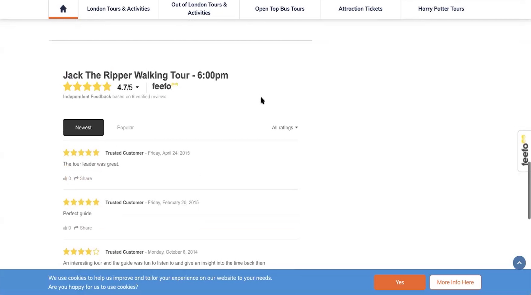 To make reviews meaningful on Travel Tours and Experiences Booking sites, then, it’s critical to provide reviews from third parties (perceived to be independent) and crucially to link to this content so that users can gain a full understanding of a tour’s reviews.
