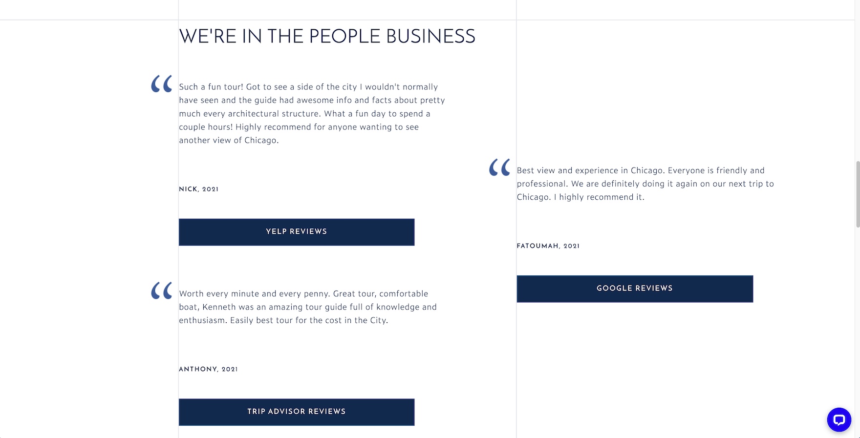 In short, most users are too sophisticated to be swayed by a handful of 5-star testimonials on a site — especially when considering spending hundreds of dollars on a potentially once-in-a-lifetime experience.