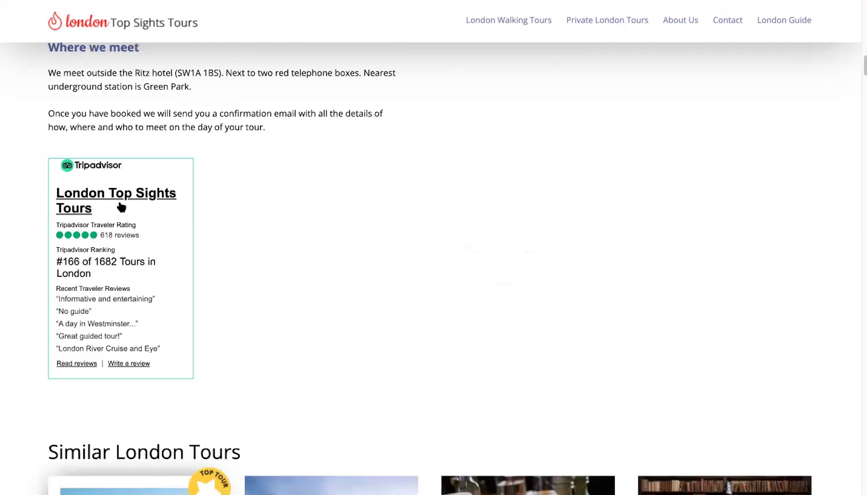 For example, when displaying an aggregate rating such as from Tripadvisor, Yelp, or Google, ensure it’s clickable and leads to the underlying reviews for that tour.