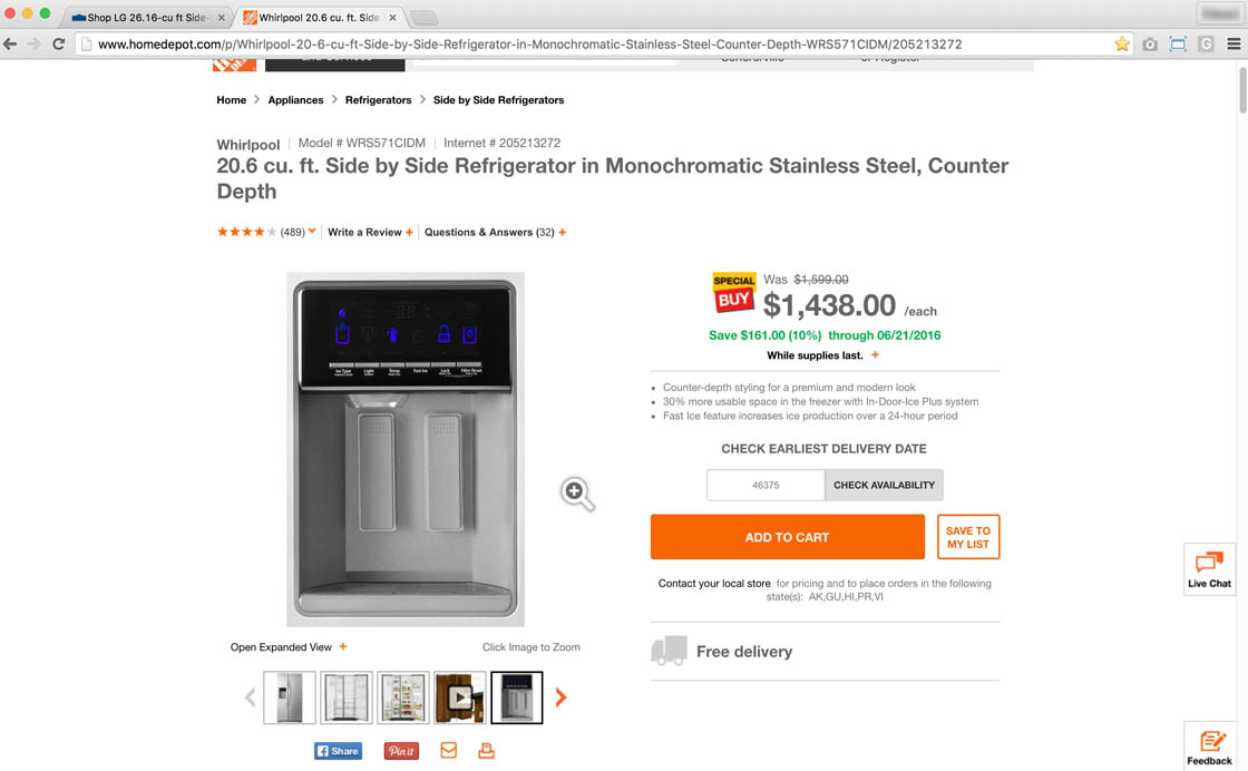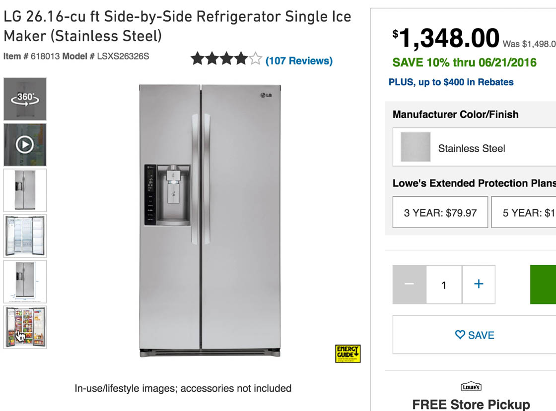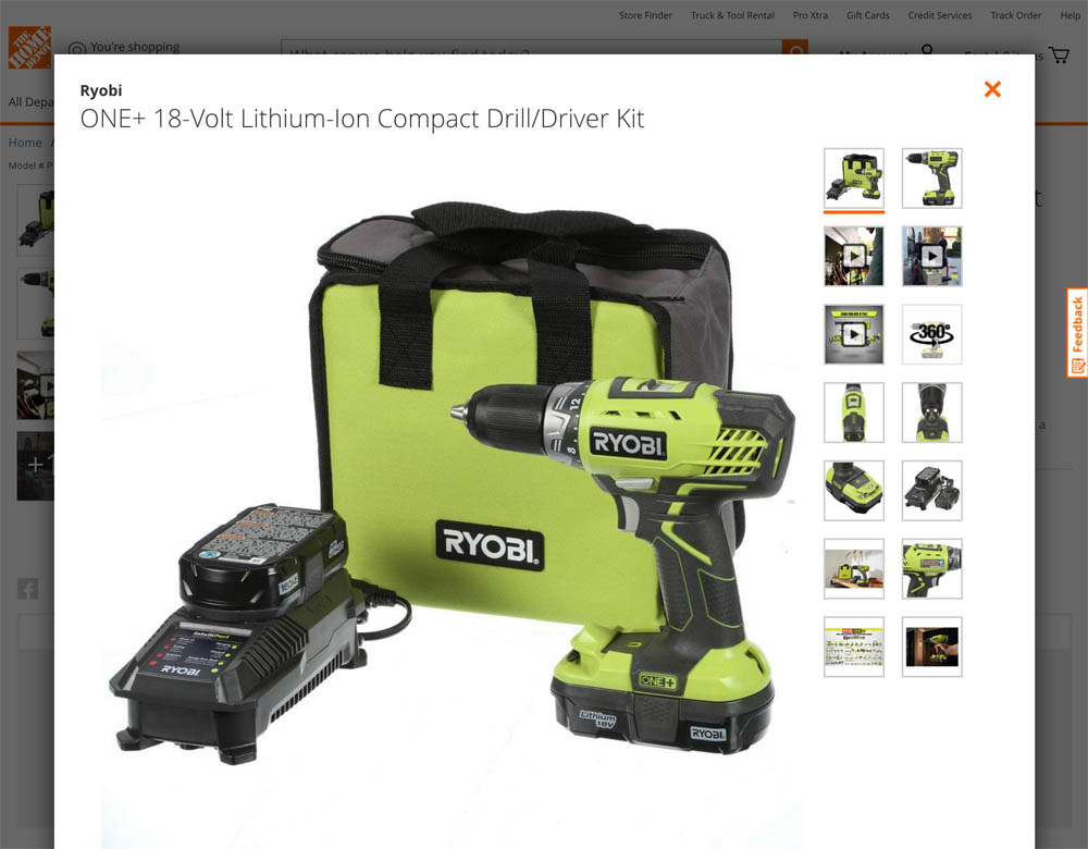 “Oh wow… right here it shows only these options. But when it popped up there’s a bunch of options [thumbnails] and you can see a lot. I like that,” a subject said at Lowe’s. Lowe’s truncates the product thumbnails by default on the product page, but when users click any product thumbnail in the image gallery an overlay is opened with all the product thumbnails.