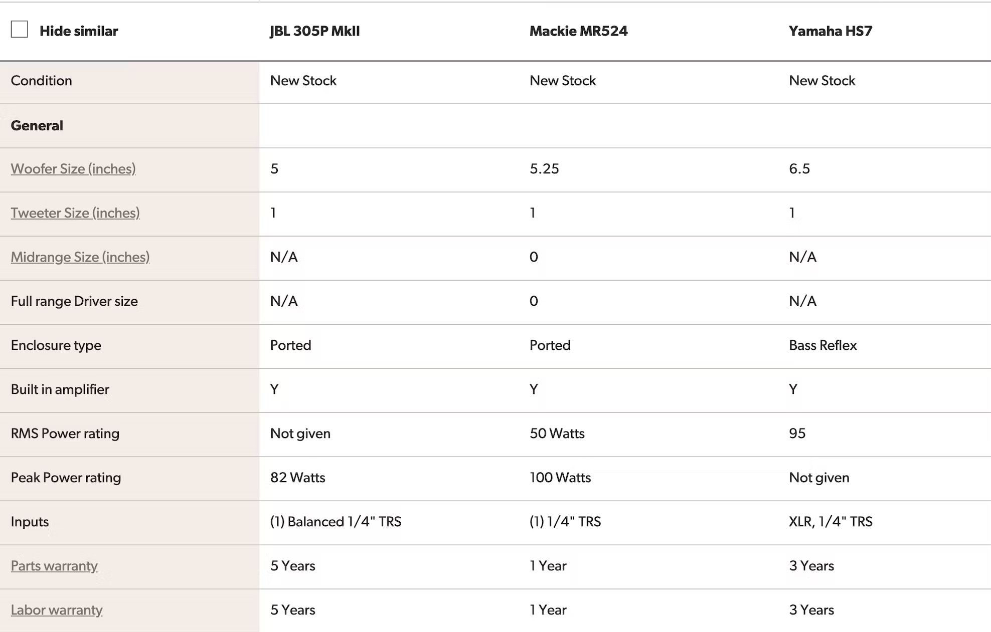 On the other hand, Crutchfield uses separating lines to define the rows in its comparison feature to assist users scanning across the columns.