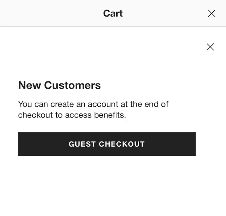 Despite that, 62% of ecommerce sites don’t make the guest checkout option the most prominent. This all but renders it invisible, according to Baymard’s research.