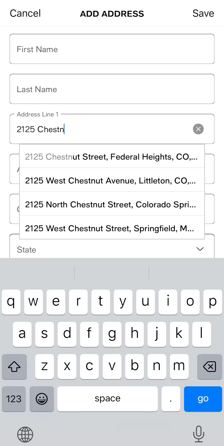 On its app (as well as mobile and desktop sites), Macy’s provides an automatic address lookup feature that auto-updates as the user begins to type their address. In the example above, the suggestions persist despite a typo in the user’s entry.