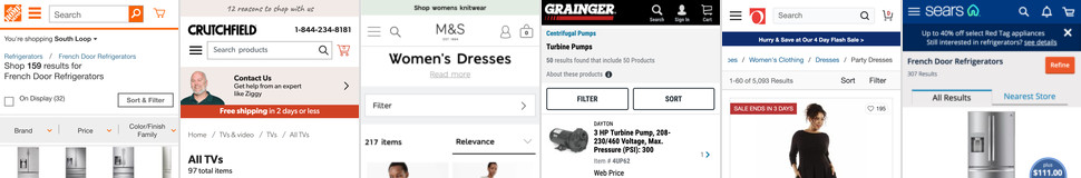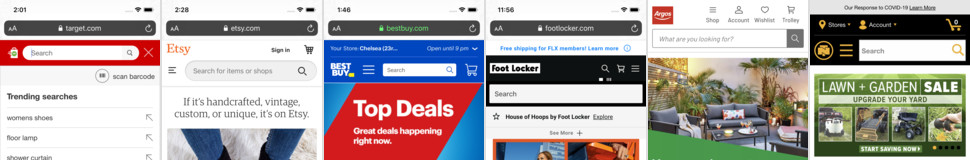 The mobile search results logic and mobile search designs that perform the best with users, mobile ‘no results’ pages, field design, search submit, search iteration flows, etc.