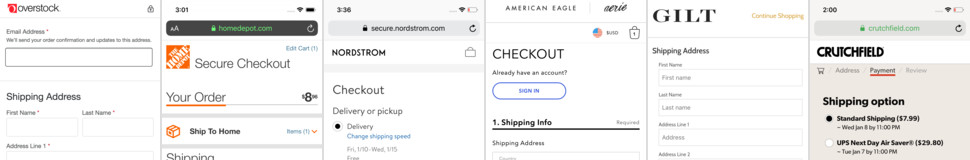 The shipping and store-pickup designs that perform the best on mobile, including displaying and describing shipping costs and speed, how to display store pickup, etc.
