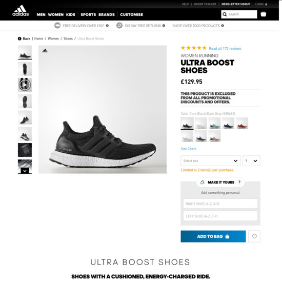This is a case study of Adidas’ e-commerce user experience (UX) performance. It’s based on a full-performance review of more than 550 design elements. 59 other sites have also been benchmarked for a complete picture of the e-commerce UX landscape