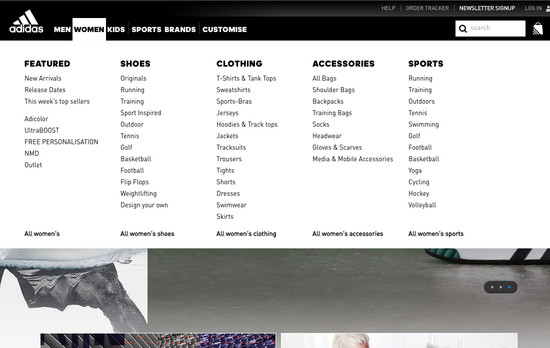 Adidas’ Homepage & Category performance is good. It is especially a good Intermediary Category Pages, good Category Taxonomy, and decent Site-Wide Layout that helps Adidas’ category UX.