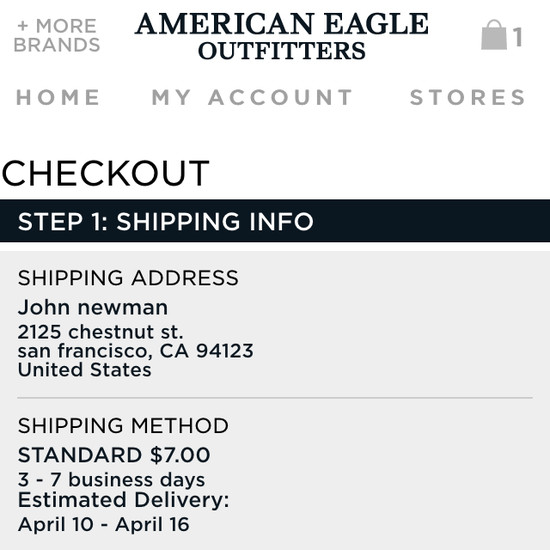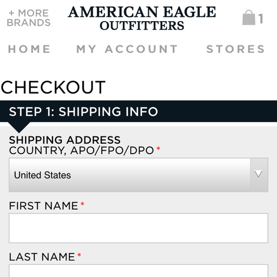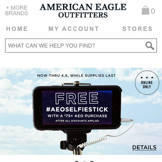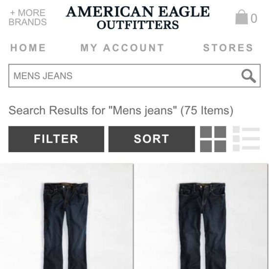 American Eagle Outfitters’ Mobile E-Commerce performance is acceptable. For instance, American Eagle Outfitters’ mobile design has state of the art Mobile Shopping Cart, Cost & Account and good Mobile Form Field Usability yet suffers from broken Mobile Homepage, Navigation, & Search.