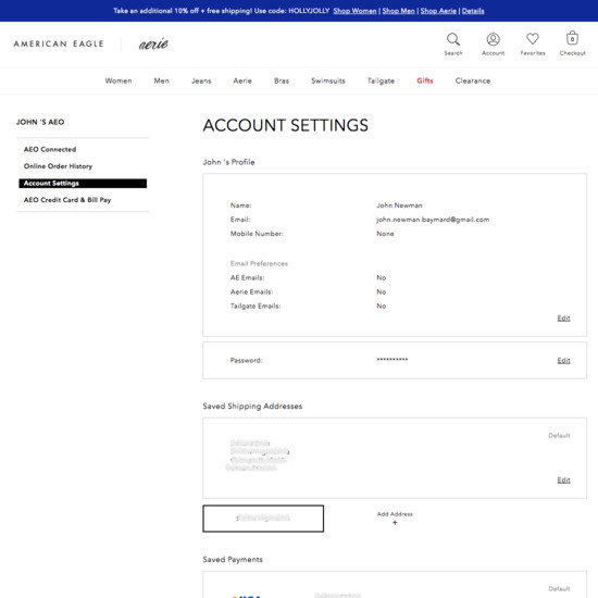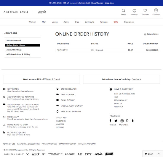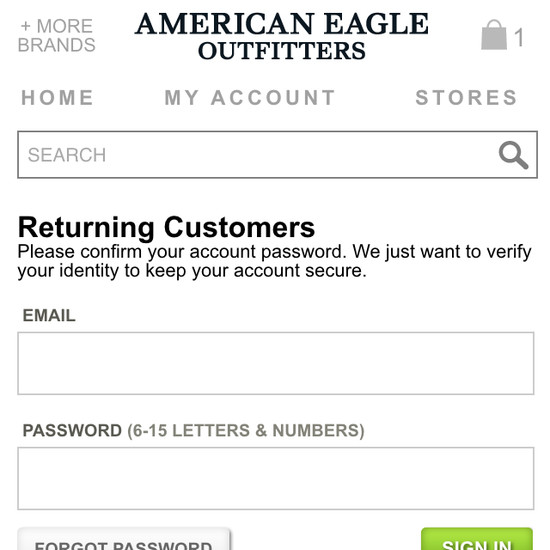 American Eagle Outfitters’ Accounts & Self-Service performance is poor. Some of American Eagle Outfitters’ biggest account usability issues are due to mediocre Account Sign In, poor Order Returns, and broken Orders & Order Tracking.