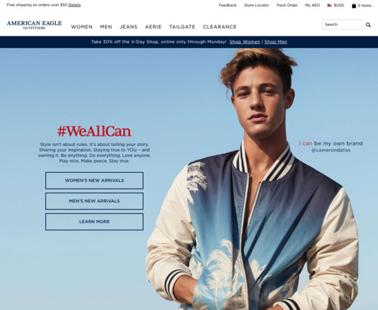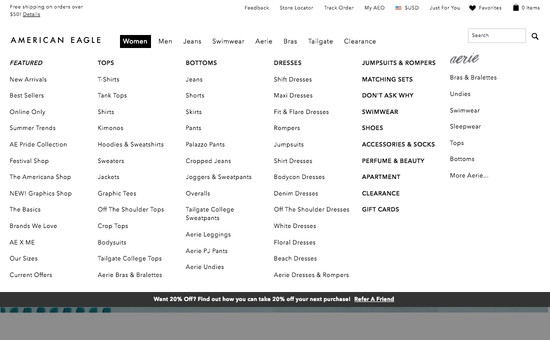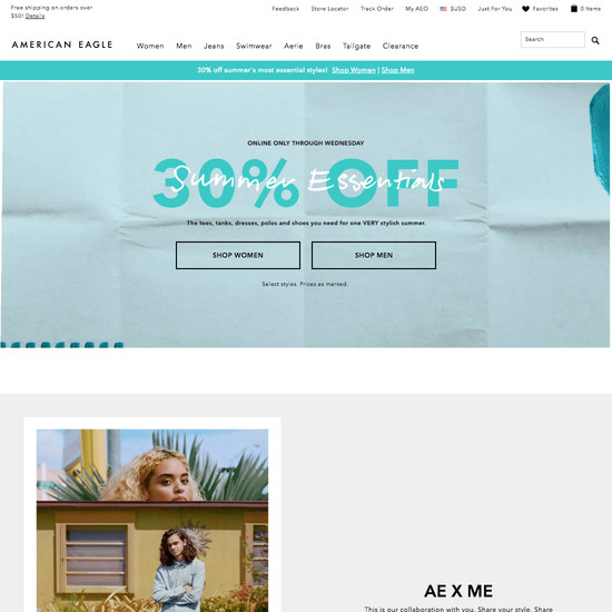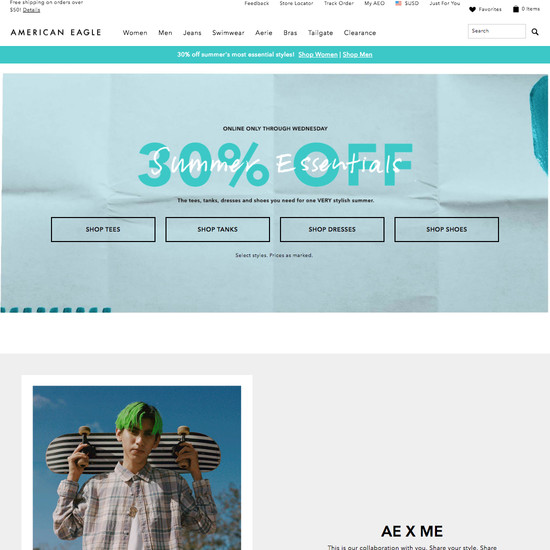 American Eagle Outfitters' E-Commerce UX: 643 guidelines · Comparative score: 337.3