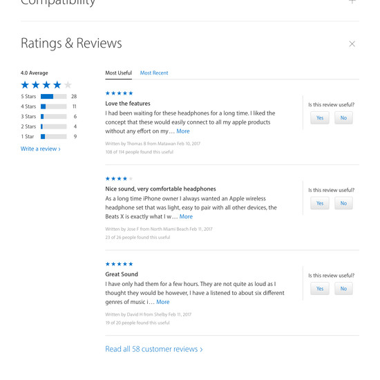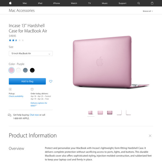 Apple’s Product Page performance is mediocre. Notably, Apple’s product page performance is hampered by mediocre The ‘Buy’ Section and poor User Reviews, although this is helped somewhat by good Product Descriptions and Image Gallery UI.