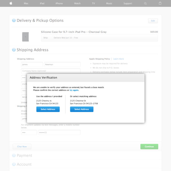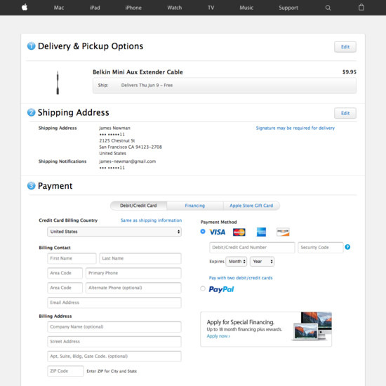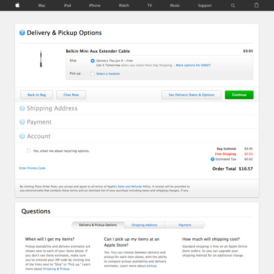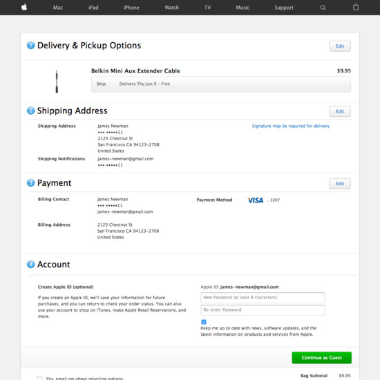 Apple’s Cart & Checkout performance is mediocre. Some of Apple’s biggest checkout usability issues are due to poor Credit Card Form, Order Confirmation & E-Mail, and Form & Page Design. That said, their checkout performs great within Gifting Flow & Features.