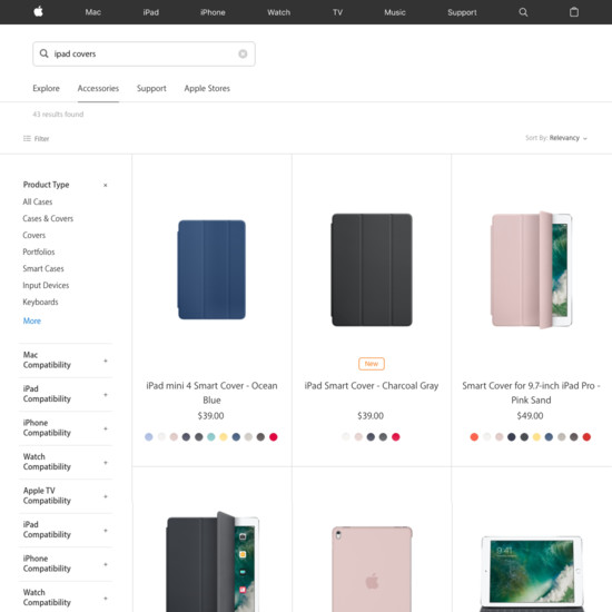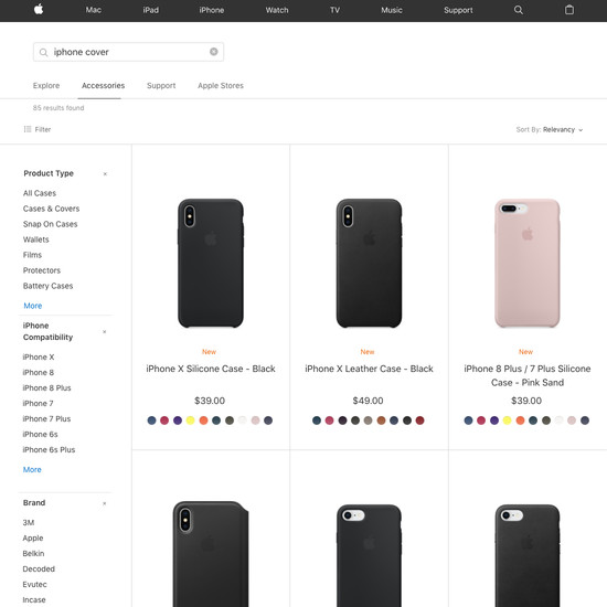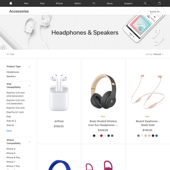 Apple’s Product Lists & Filtering performance is decent. For instance, Apple’s product listings have state of the art List Items: Interface & Hit Areas and good Filtering: Scope & Logic yet suffer from poor List Layout and broken Loading Products.