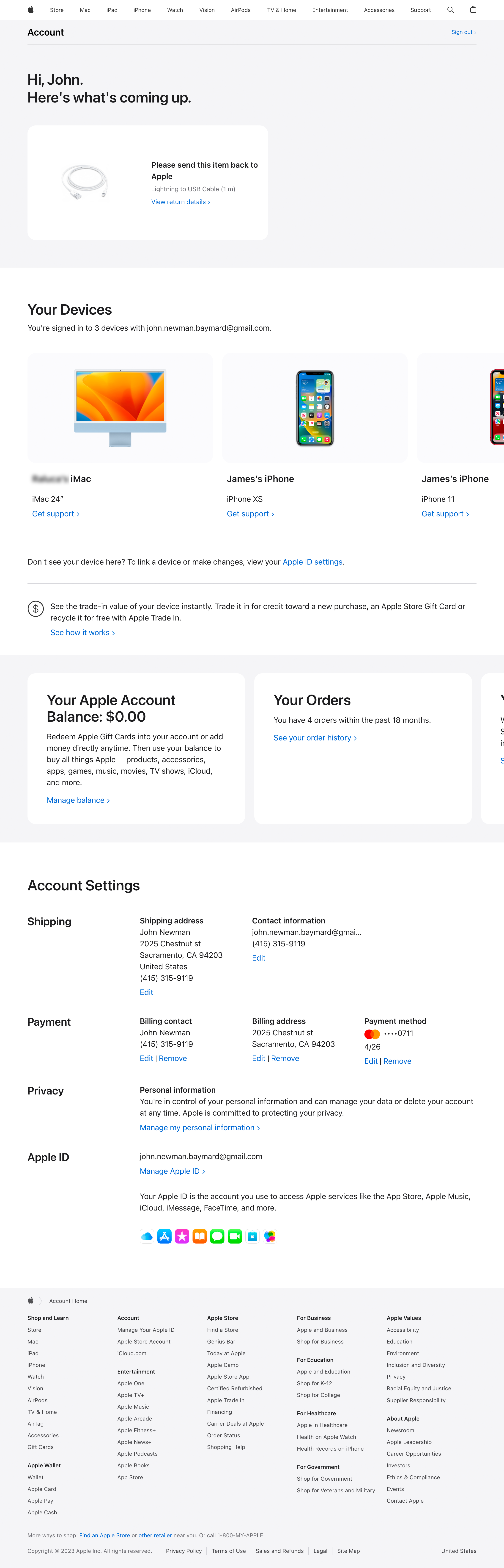 Apple’s Account Dashboard + Address Book + Stored Credit Cards