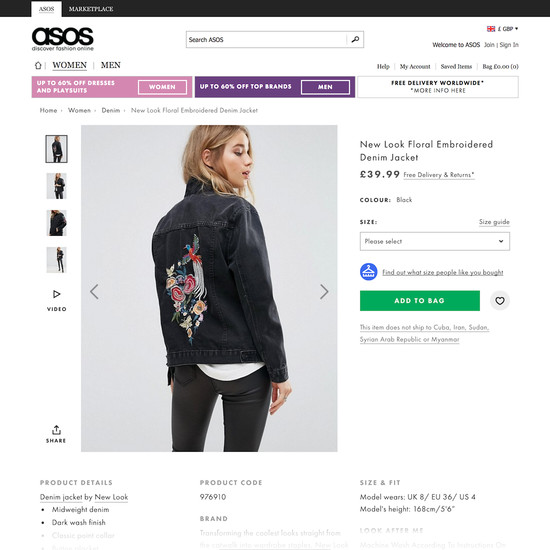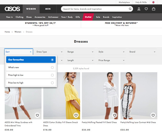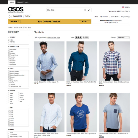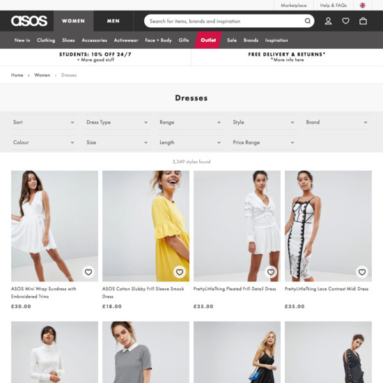 ASOS’s Product Lists & Filtering performance is decent. For instance, ASOS’s product listings have state of the art List Layout and Loading Products yet suffer from mediocre Filtering: Available Filters and List Items: Personalization.