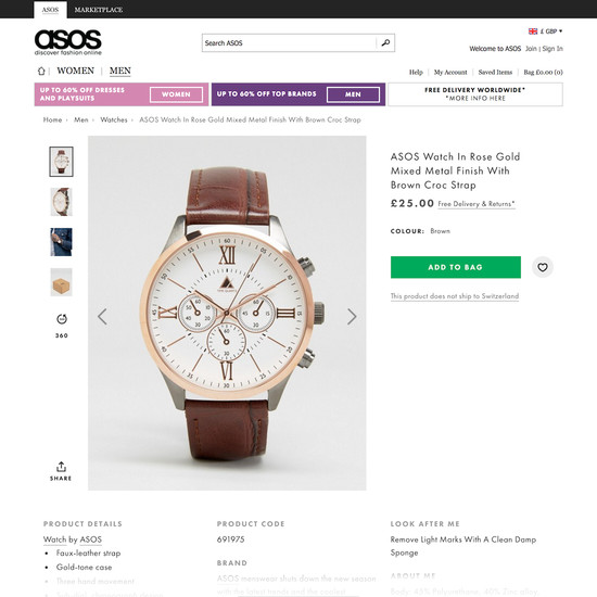 ASOS’s Product Page performance is acceptable. For instance, ASOS’s product page experience has good Product Page Layout and Product Video & 360-View yet suffers from mediocre Auxiliary Content and Product Variations.