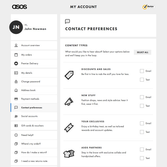 ASOS’s Accounts & Self-Service performance is acceptable. Notably, ASOS’s account performance is hampered by mediocre Account Sign In and poor Orders & Order Tracking, although this is helped somewhat by state of the art Account-Wide Navigation, Structure, & Information and good Account Dashboard.