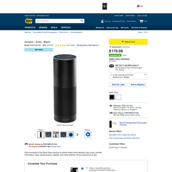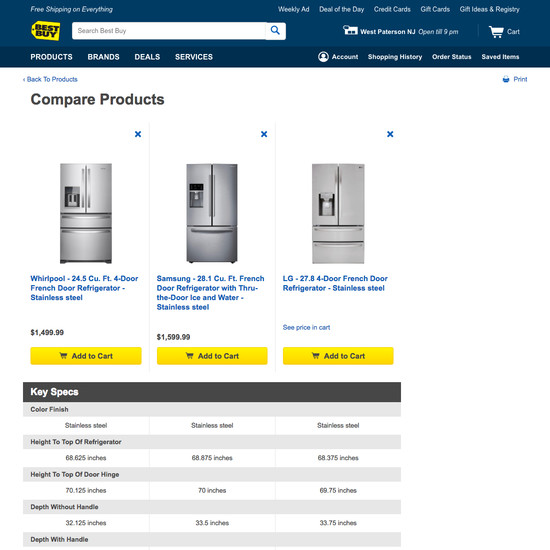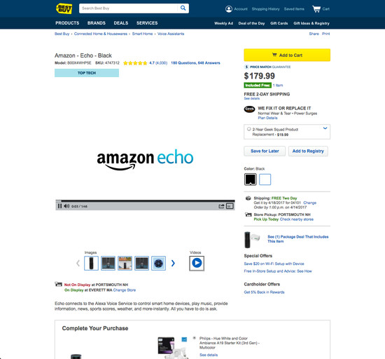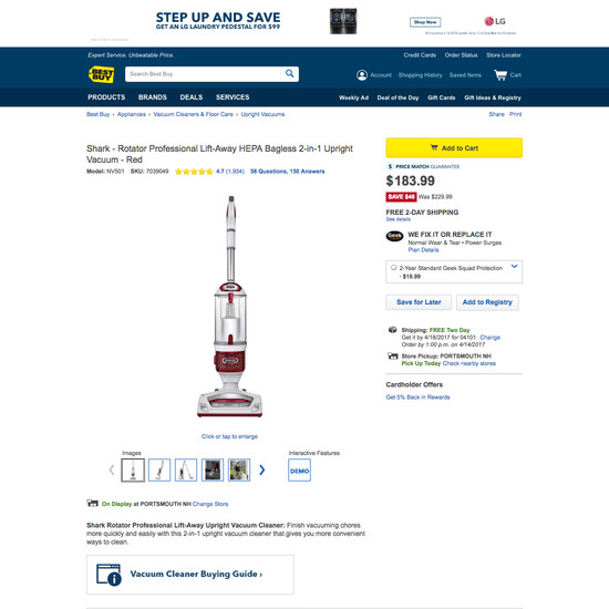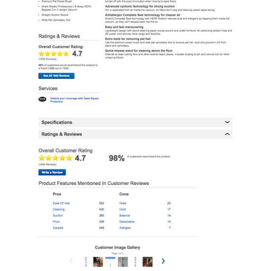 Best Buy’s Product Page performance is decent. For instance, Best Buy’s product page experience has state of the art Product Images and Specifications Sheet yet suffers from mediocre Image Gallery UI and broken Auxiliary Content.