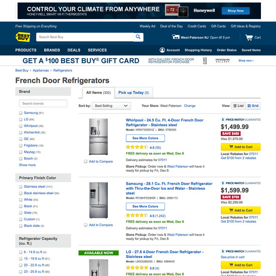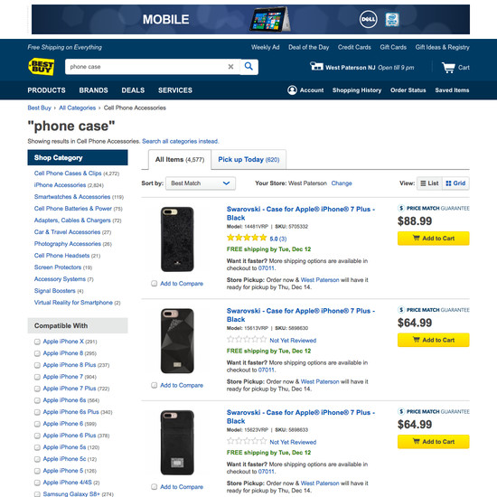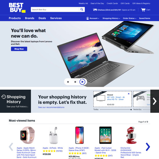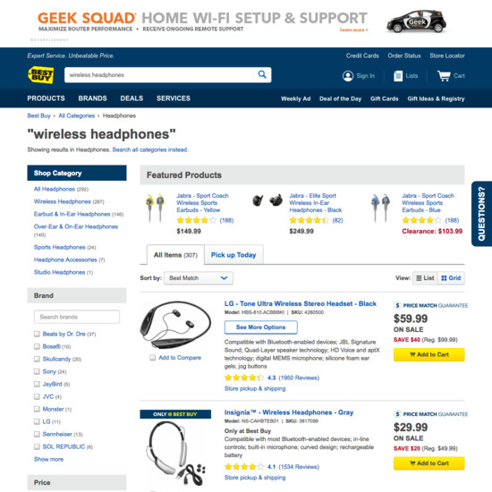 Best Buy’s Product Lists & Filtering performance is mediocre. Some of Best Buy’s biggest product list usability issues are due to poor List Items: Personalization, poor Loading Products, and broken List Items: Interface & Hit Areas.