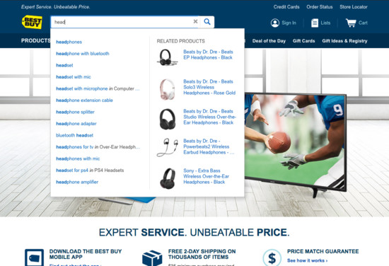 Best Buy’s On-Site Search performance is acceptable. Notably, Best Buy’s on-site search performance is hampered by mediocre Results Layout & Filtering and poor Results Logic & Guidance, although this is helped somewhat by good Search Form & Logic and Search Autocomplete.