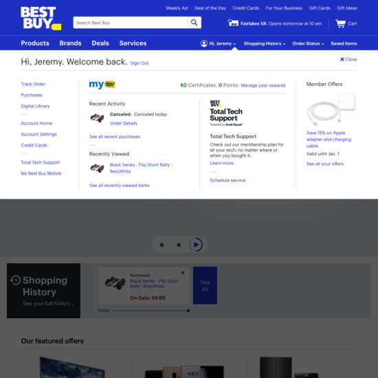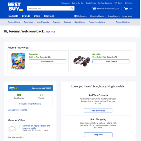 Best Buy’s Accounts & Self-Service performance is acceptable. Notably, Best Buy’s account performance is hampered by poor Account Drop-Down and ‘Your Account’: Addresses, Payments, & Newsletters, although this is helped somewhat by state of the art Order Returns and good Orders & Order Tracking.