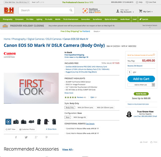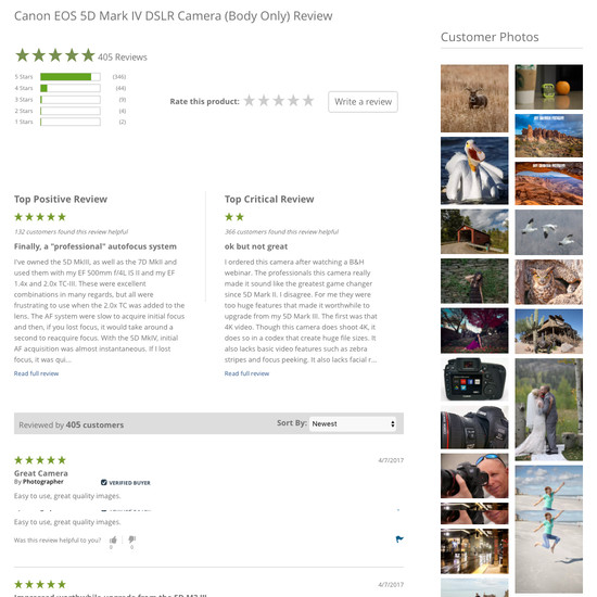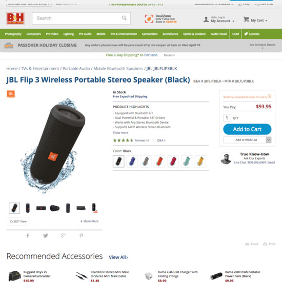 B&H Photo’s Product Page performance is decent. For instance, B&H Photo’s product page experience has state of the art Product Variations and Image Gallery UI yet suffers from broken User Reviews.