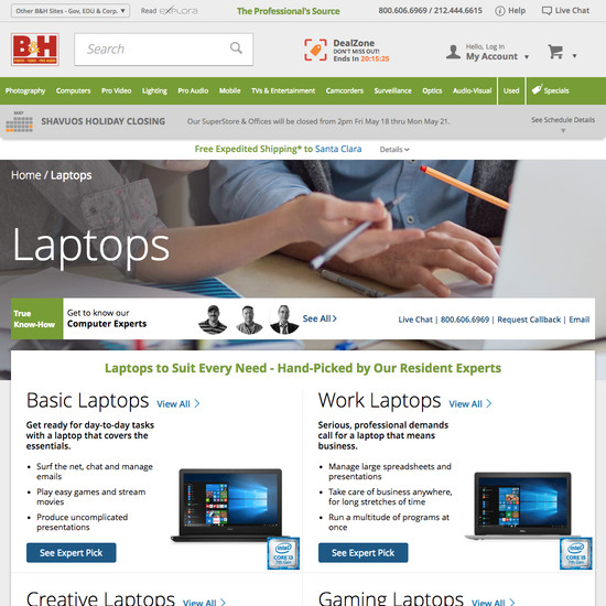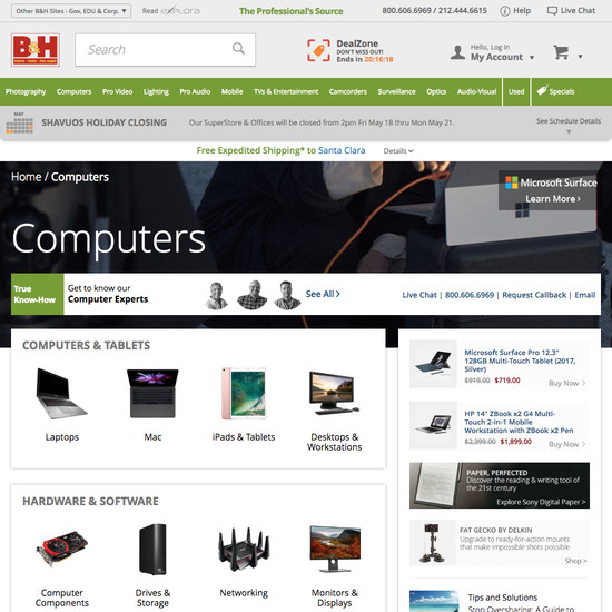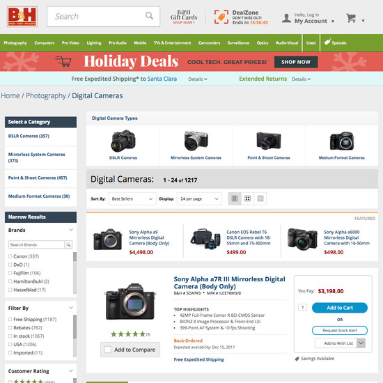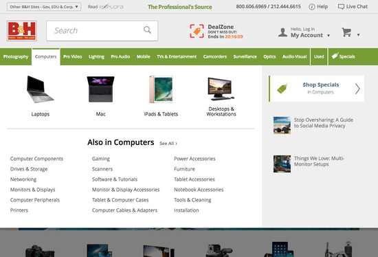 B&H Photo’s Homepage & Category performance is good. It is especially a state of the art Homepage, good Category Taxonomy, and decent Main Navigation that helps B&H Photo’s category UX.