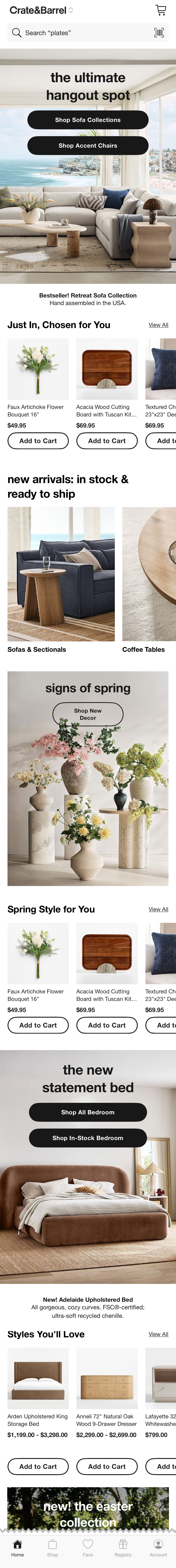 Crate & Barrel’s App Homepage
