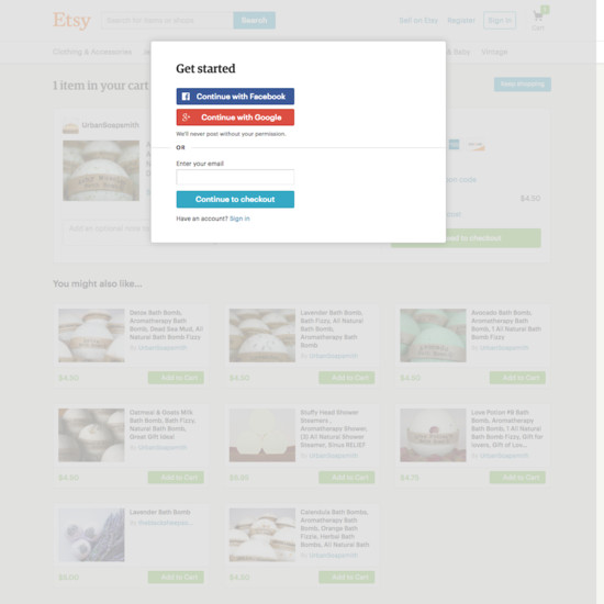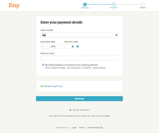 Etsy’s Cart & Checkout performance is decent. For instance, Etsy’s checkout has state of the art Order Review and Field Design & Features yet suffers from mediocre Shipping & Store Pickup and poor Payment Flow & Methods (Incl. 3rd-Party).
