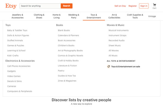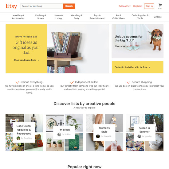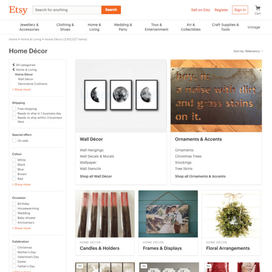 Etsy’s Homepage & Category performance is decent. It is especially a good Main Navigation, decent Category Taxonomy, and decent Homepage that helps Etsy’s category UX.