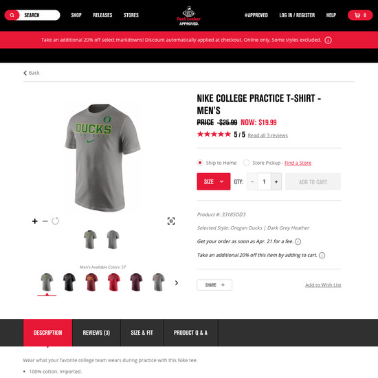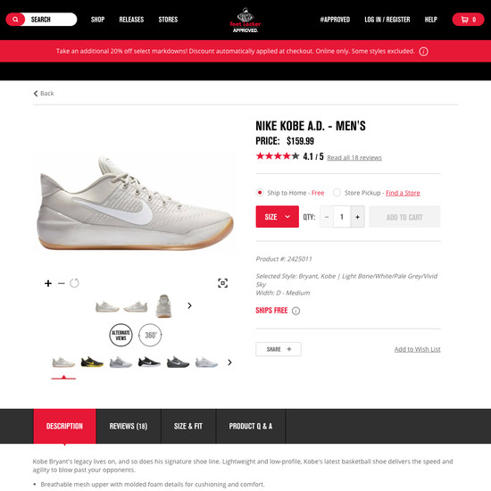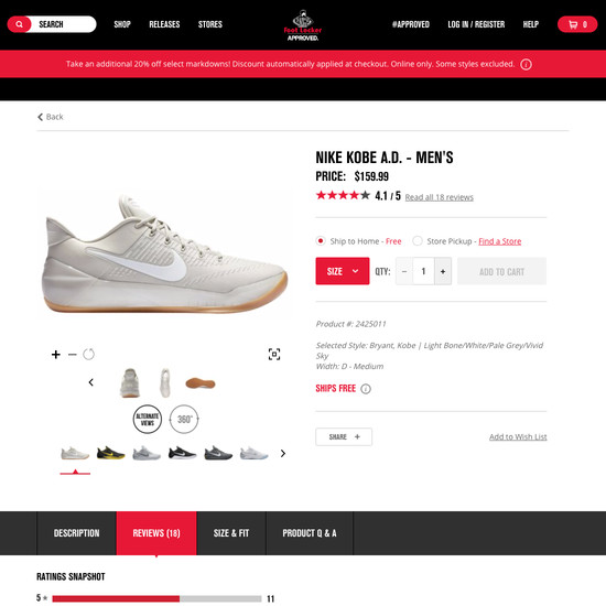 Foot Locker’s Product Page performance is poor. Some of Foot Locker’s biggest product page usability issues are due to mediocre User Reviews, Product Descriptions, and Specifications Sheet.