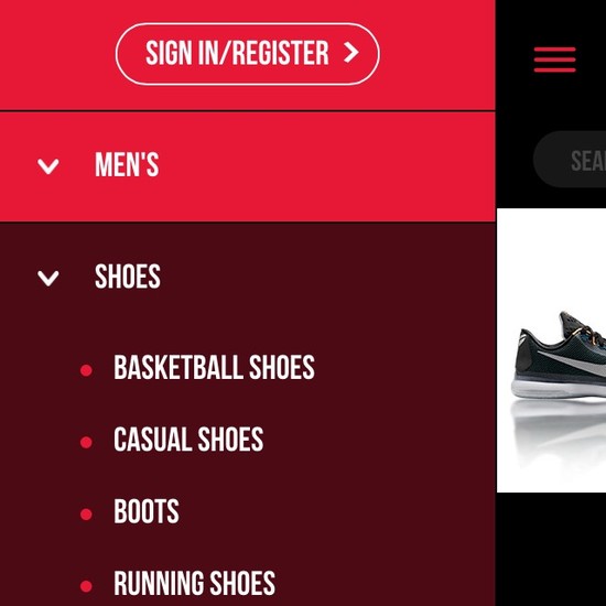 Foot Locker’s Homepage & Category performance is acceptable. For instance, Foot Locker’s category experience has decent Site-Wide Layout and Category Taxonomy yet suffers from broken Intermediary Category Pages.
