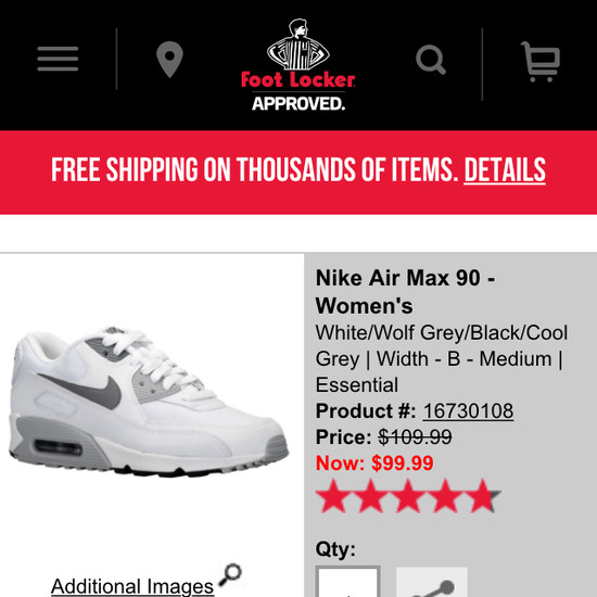 Foot Locker’s Mobile E-Commerce performance is poor. Foot Locker’s mobile design in particular suffers from usability issues caused by mediocre Mobile Product Page Layouts, poor Mobile Product Descriptions, Specs, & Images, and broken Mobile Shopping Cart, Cost & Account. That said, their mobile design performs well within Touch Keyboards.