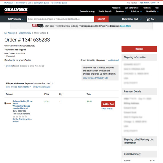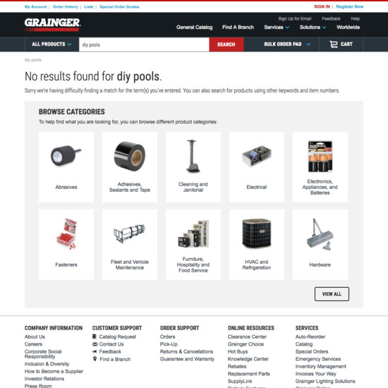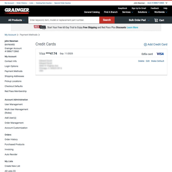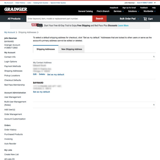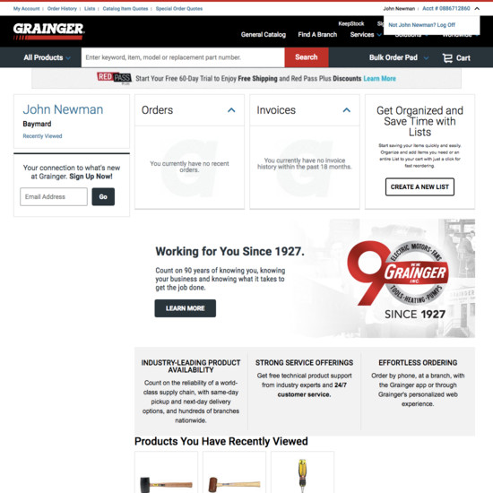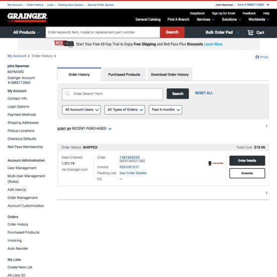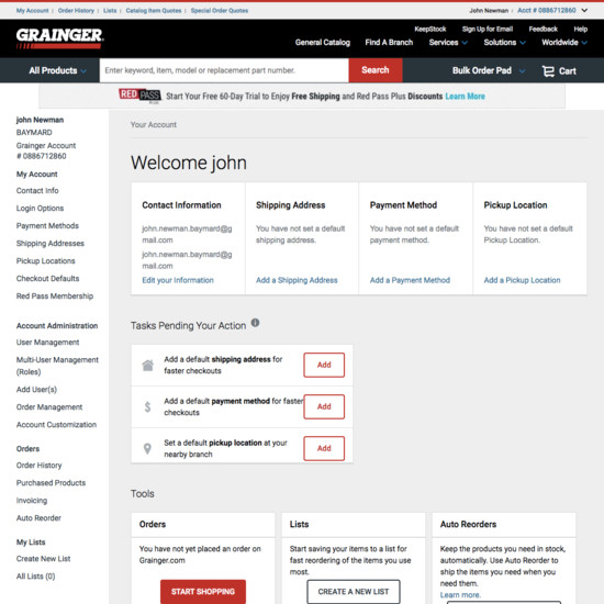 Grainger’s Accounts & Self-Service performance is poor. Some of Grainger’s biggest account usability issues are due to mediocre Account Drop-Down, broken Order Returns, and broken Account Sign In.