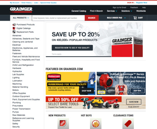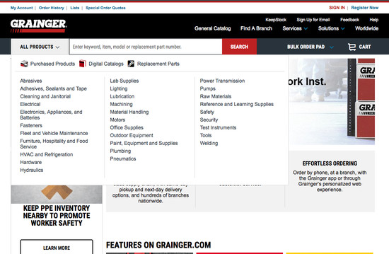 This is a case study of Grainger’s e-commerce user experience (UX) performance. It’s based on a full-performance review of more than 550 design elements. 59 other sites have also been benchmarked for a complete picture of the e-commerce UX landscape
