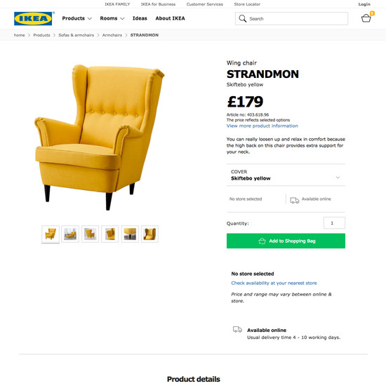 IKEA’s Product Page performance is poor. IKEA’s product page experience is particularly thwarted by usability issues related to mediocre Product Descriptions, poor User Reviews, and poor Cross-Sells & Cross-Navigation. That said, their product page experience performs well within Image Gallery UI.