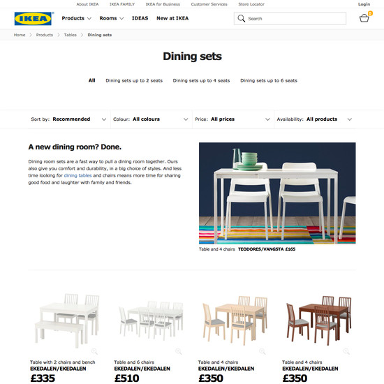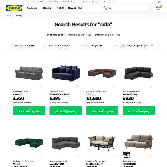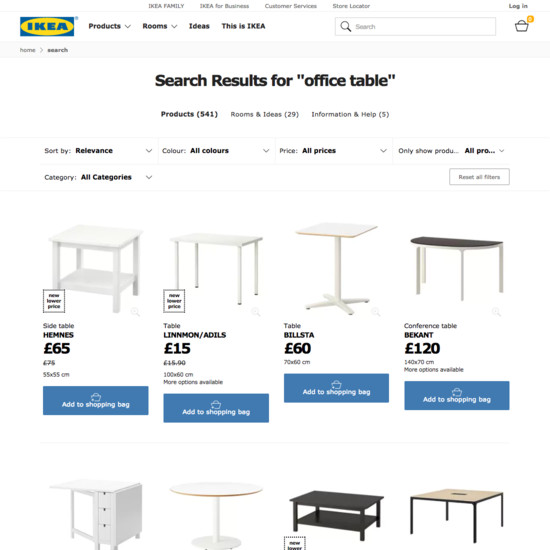 IKEA’s Product Lists & Filtering performance is mediocre. Some of IKEA’s biggest product list usability issues are due to mediocre Filtering: Interface & Layout, poor Filtering: Scope & Logic, and broken Filtering: Available Filters. That said, their product listings perform well within Comparison Tool.