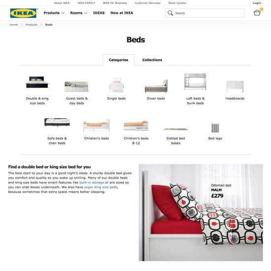 IKEA’s Homepage & Category performance is acceptable. Notably, IKEA’s category performance is hampered by mediocre Main Navigation and broken Site-Wide Layout, although this is helped somewhat by good Intermediary Category Pages.