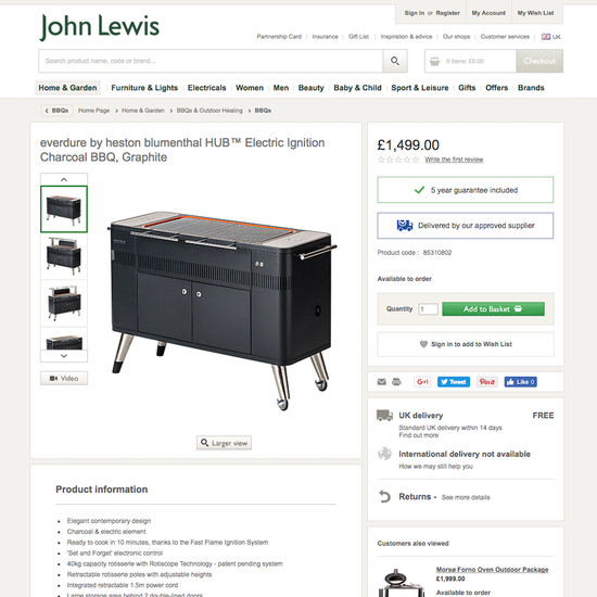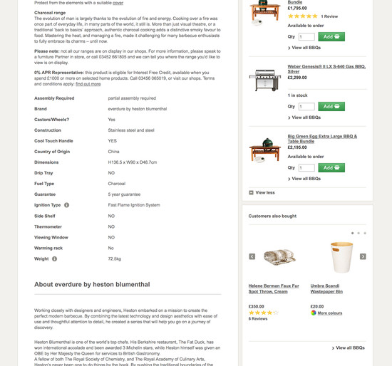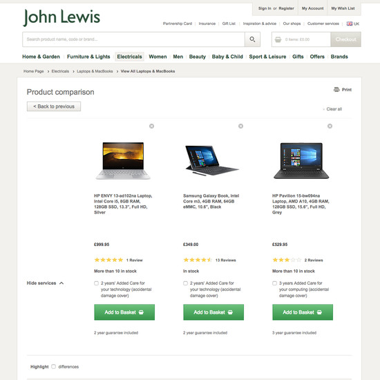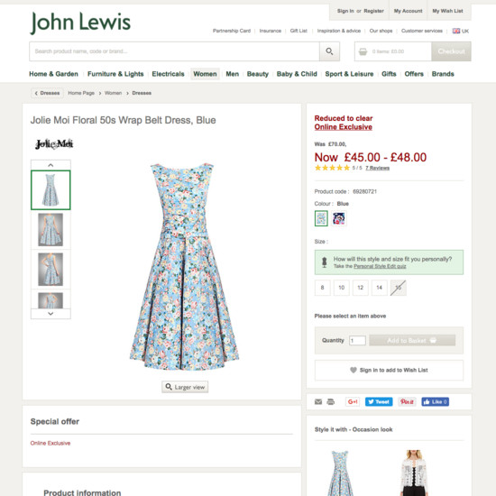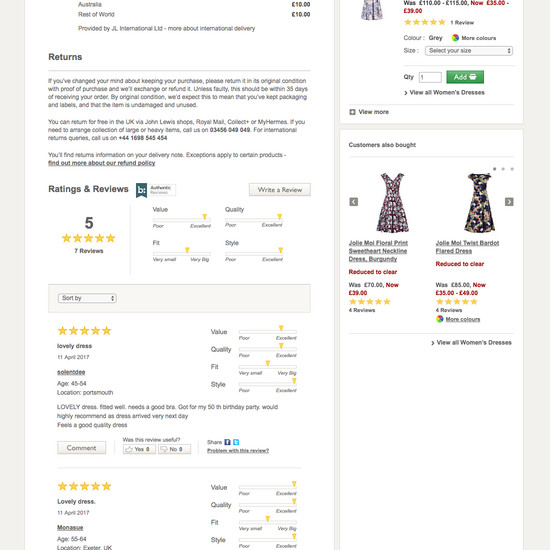 John Lewis’ Product Page performance is acceptable. Notably, John Lewis’ product page performance is hampered by poor Specifications Sheet and User Reviews, although this is helped somewhat by good Cross-Sells & Cross-Navigation and Product Images.