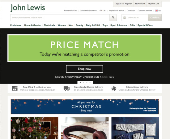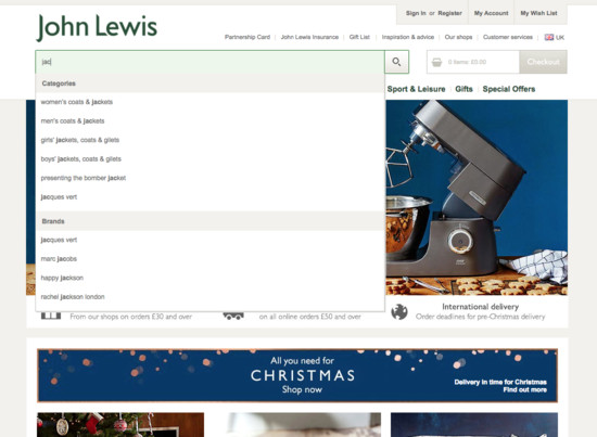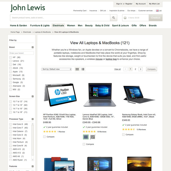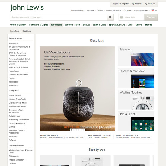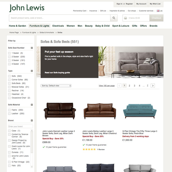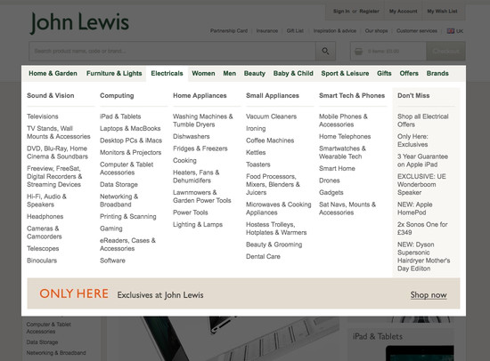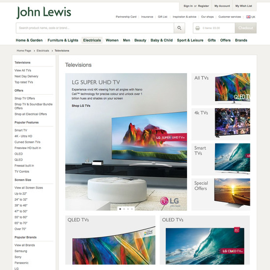 John Lewis’ Homepage & Category performance is decent. It is especially a state of the art Intermediary Category Pages and decent Site-Wide Layout that helps John Lewis’ category UX.