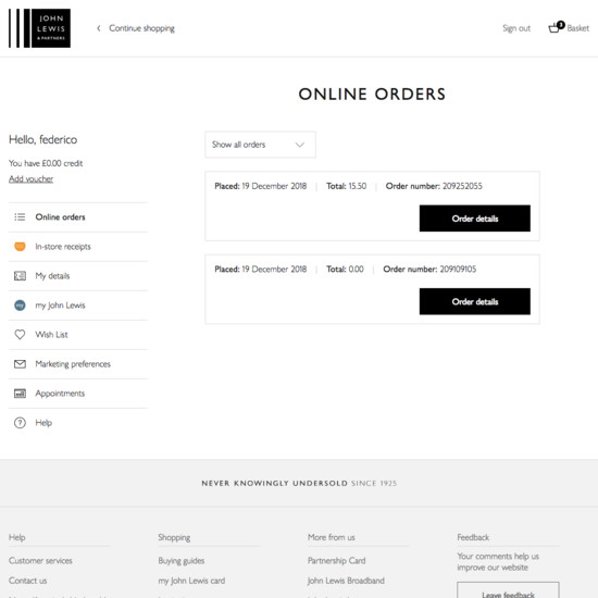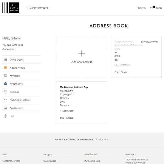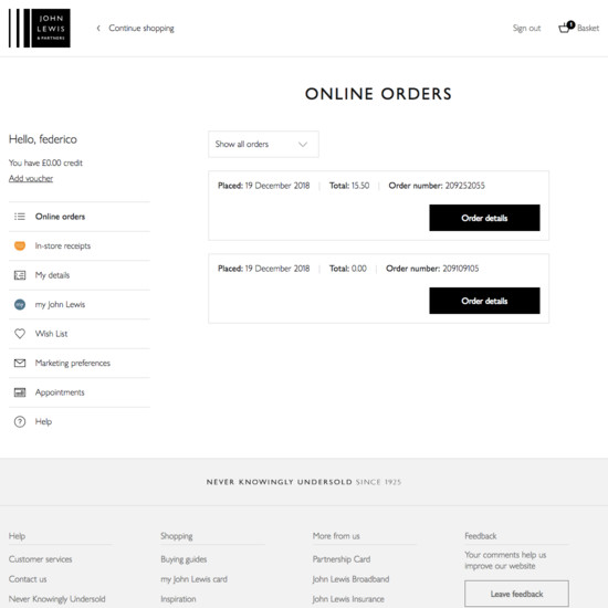 John Lewis’ Accounts & Self-Service performance is mediocre. Some of John Lewis’ biggest account usability issues are due to poor ‘Your Account’: Addresses, Payments, & Newsletters, Account Sign In, and Order Returns.