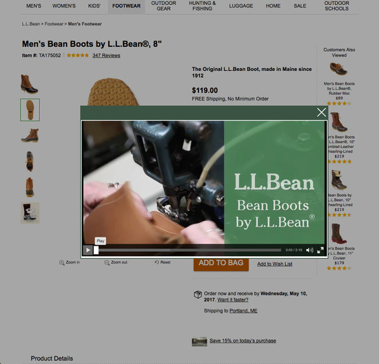 L.L. Bean’s Product Page performance is decent. For instance, L.L. Bean’s product page experience has state of the art Product Images and good Product Page Layout yet suffers from mediocre Specifications Sheet and poor Product Video & 360-View.
