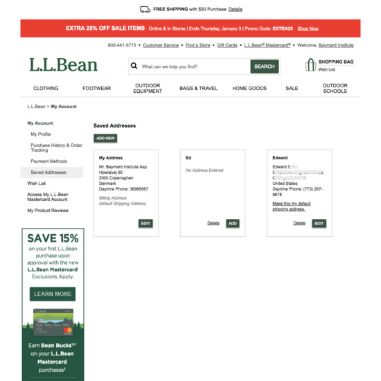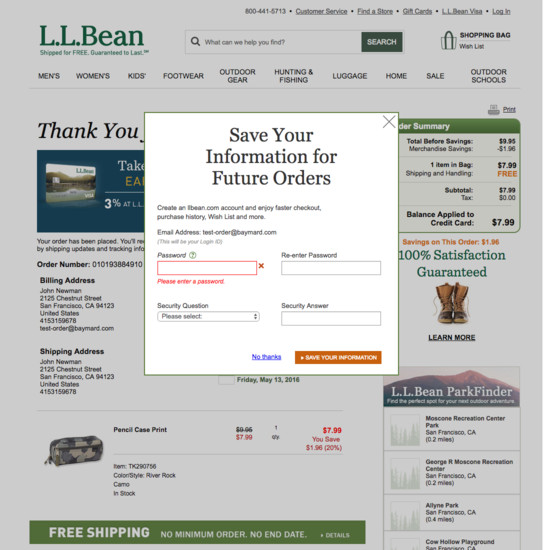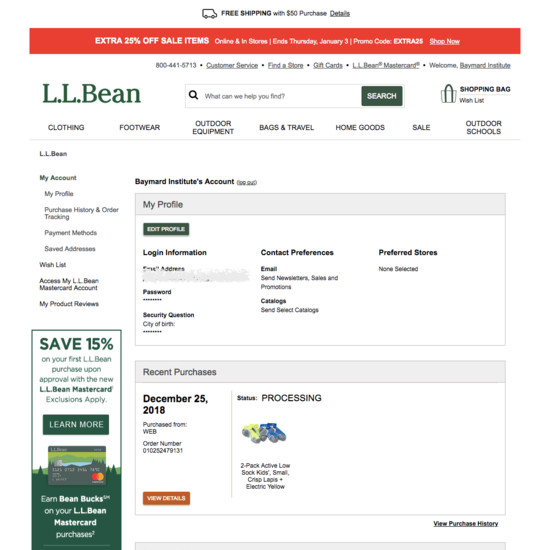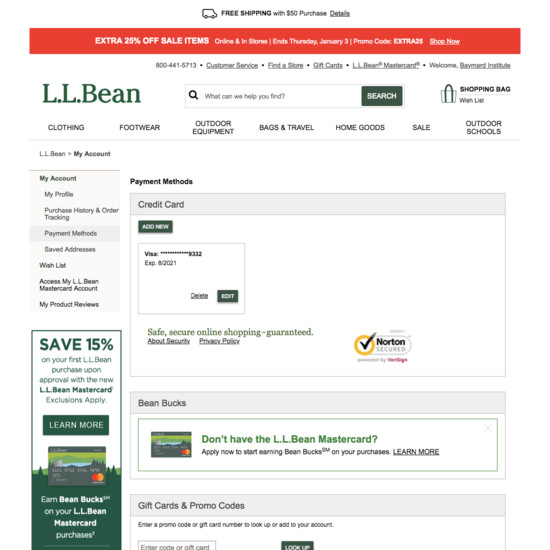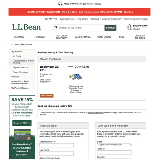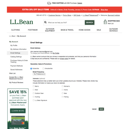 L.L. Bean’s Accounts & Self-Service performance is acceptable. Notably, L. L. Bean’s account performance is hampered by poor Account Dashboard, although this is helped somewhat by good Account-Wide Navigation, Structure, & Information and ‘Your Account’: Addresses, Payments, & Newsletters.