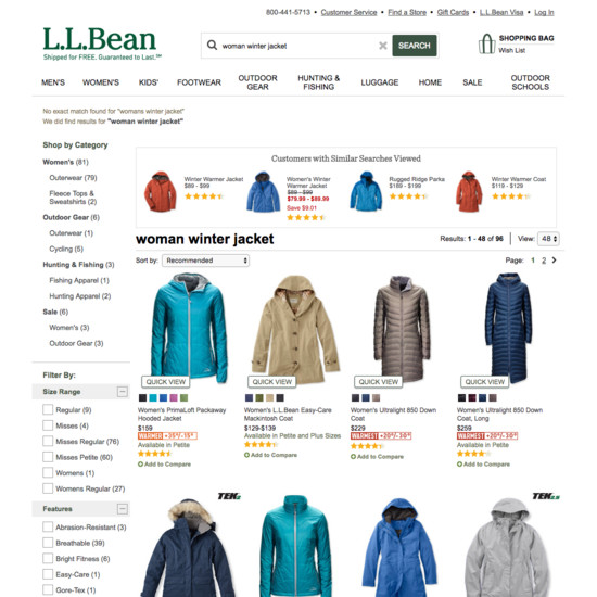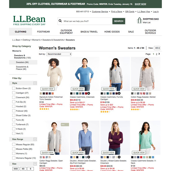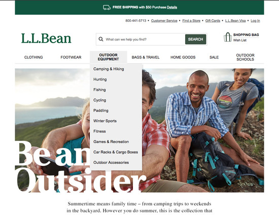 L.L. Bean’s Homepage & Category performance is good. It is especially a state of the art Main Navigation, good Category Taxonomy, and good Site-Wide Layout that helps L.L. Bean’s category UX.