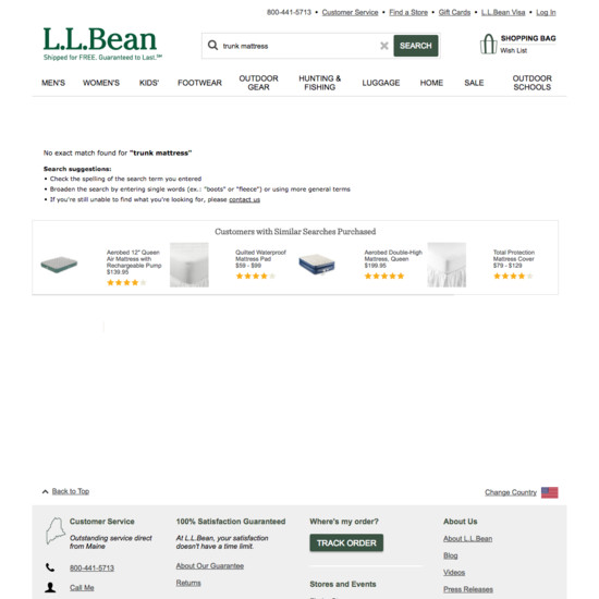 L.L. Bean’s On-Site Search performance is acceptable. Notably, L.L. Bean’s on-site search performance is hampered by mediocre Results Layout & Filtering and poor Results Logic & Guidance, although this is helped somewhat by good Search Query Types.