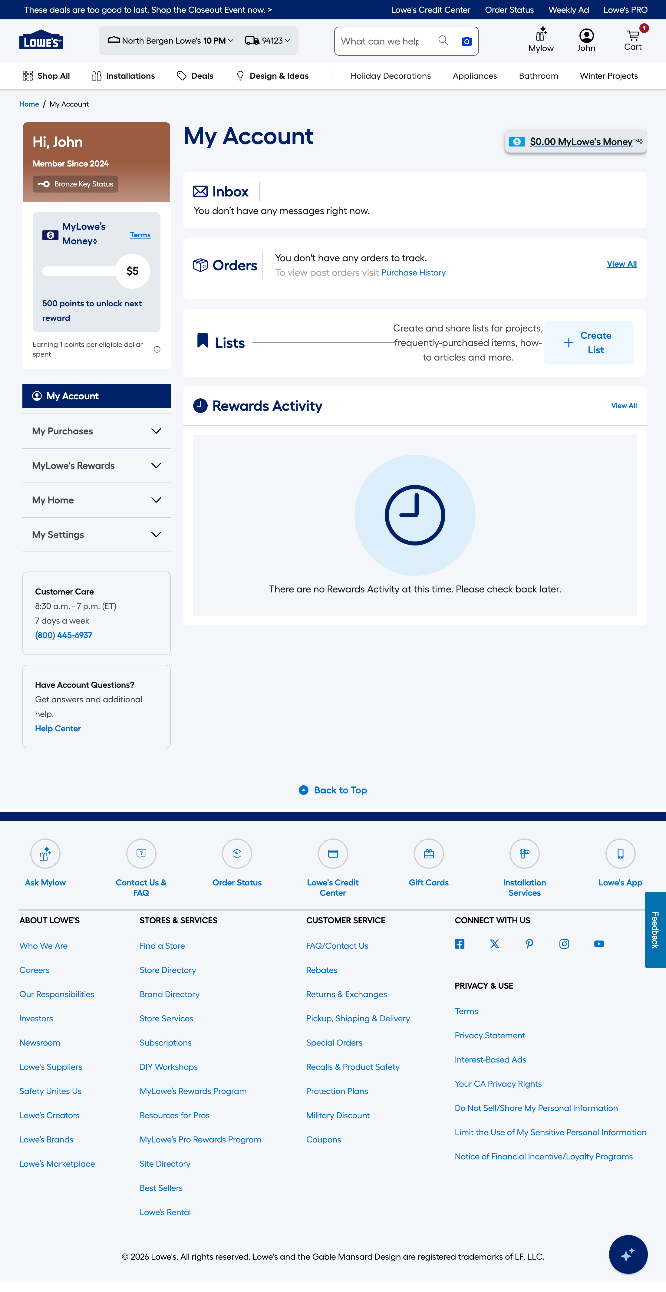 Lowe’s Account Dashboard + Loyalty Program Membership