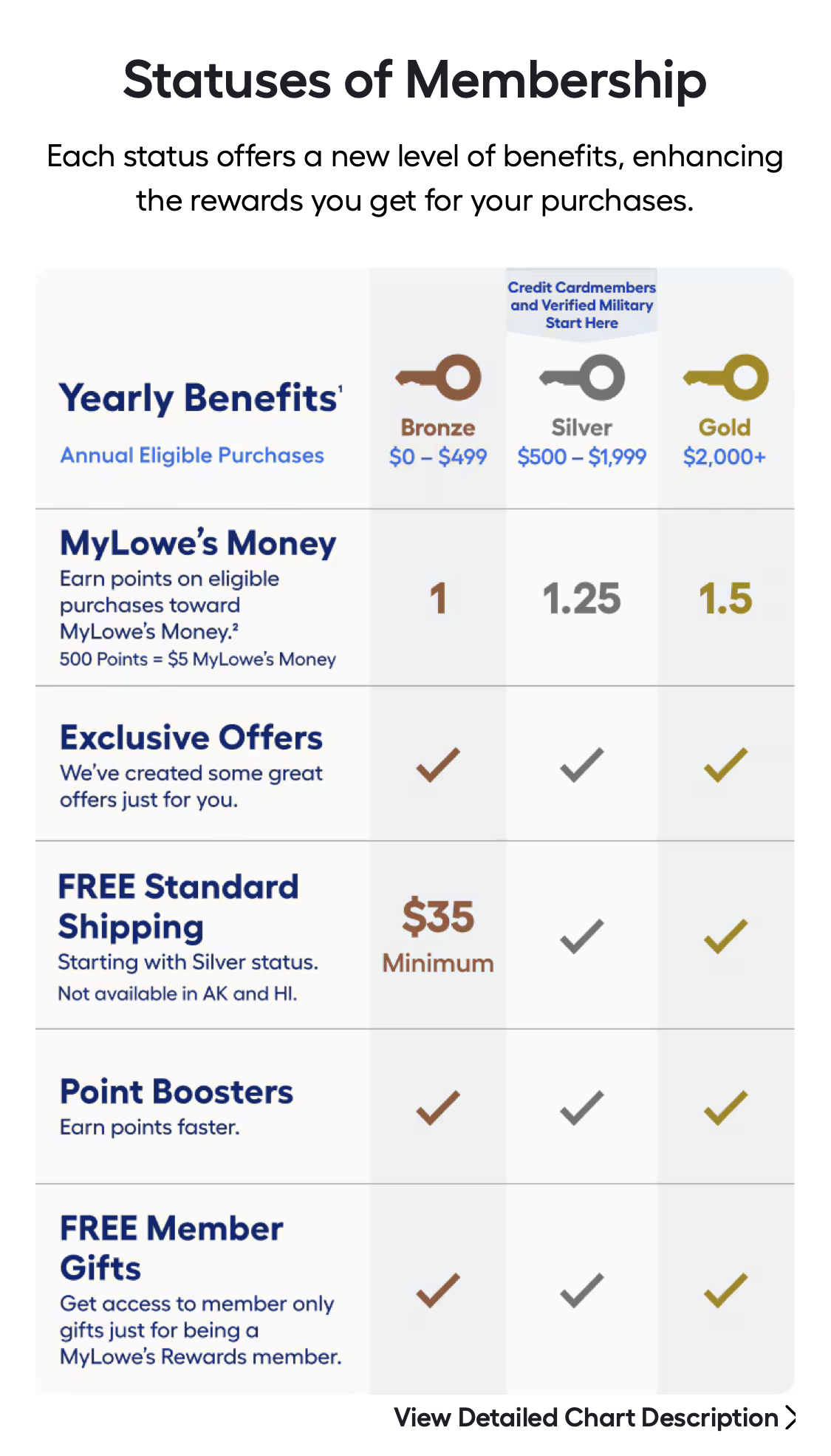 Lowe’s Mobile Loyalty Tiers Table