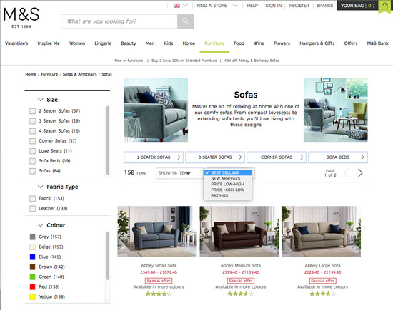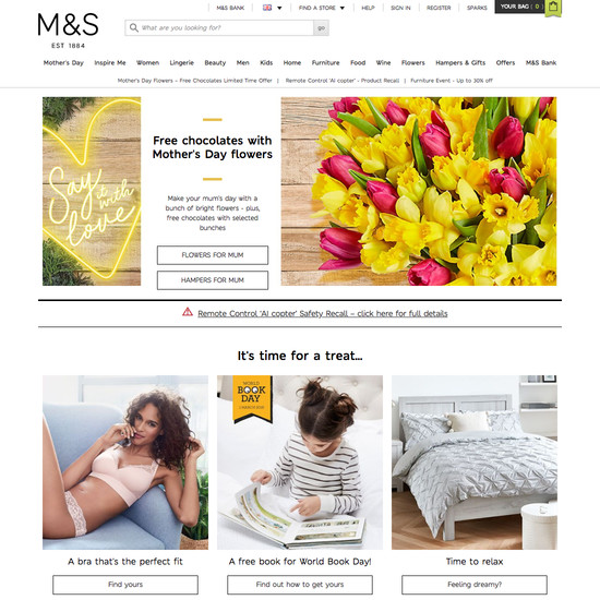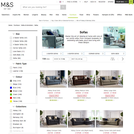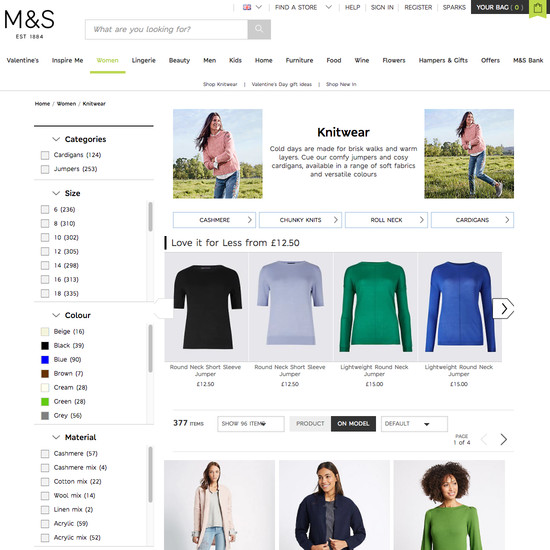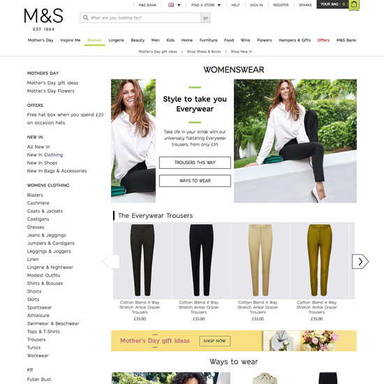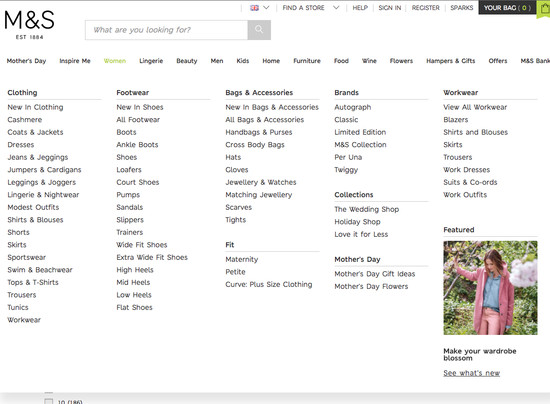 Marks & Spencer’s Homepage & Category performance is decent. It is especially a state of the art Site-Wide Layout, good Homepage, and decent Intermediary Category Pages that helps Marks & Spencer’s category UX. Do, however, watch out for their mediocre Main Navigation performance.